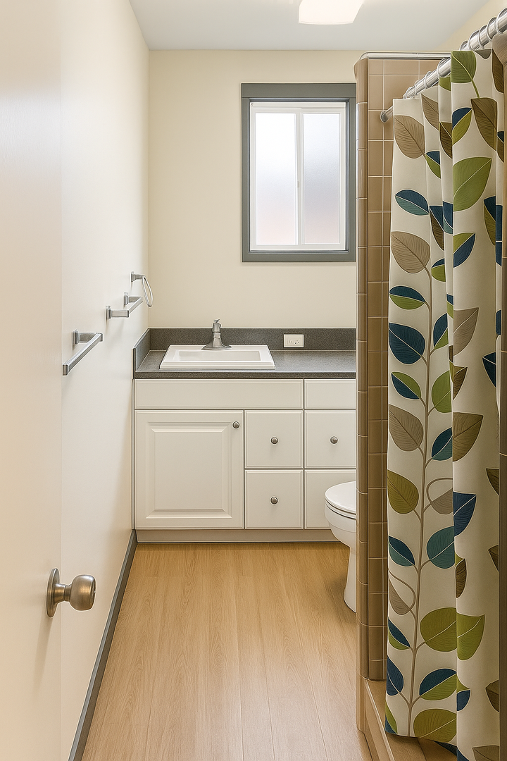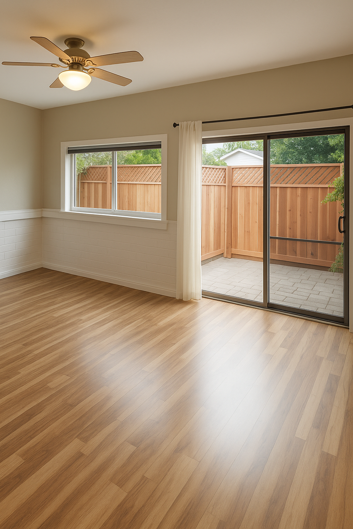 Charming one-bedroom, one-bathroom cottage tucked privately behind the front house. Enjoy beautiful wood laminate floors throughout and a spacious kitchen featuring a large breakfast bar with seating on both the kitchen and living room sides.